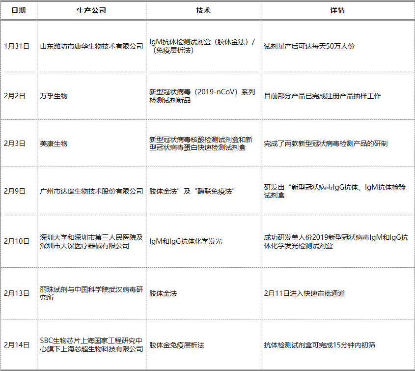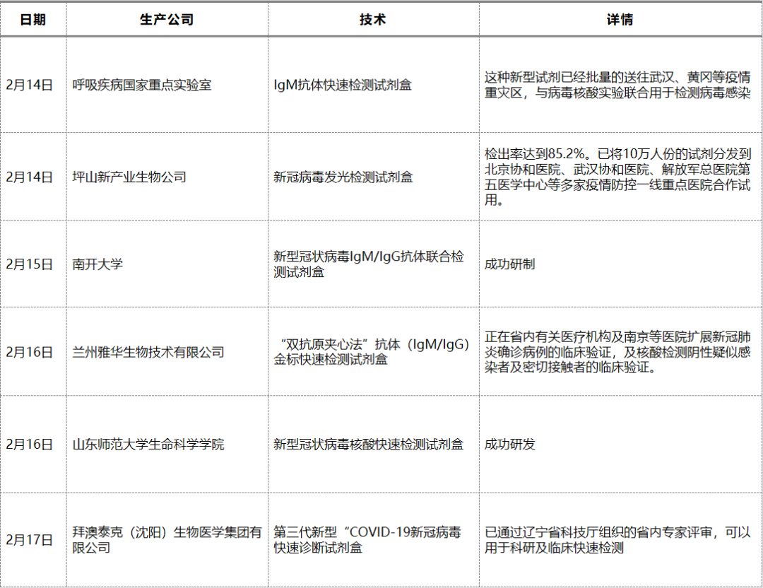 目前,已有至少12家机构或科研团队陆续发布了关于新型快速检测试剂盒的研发进展。