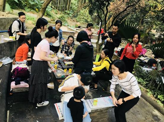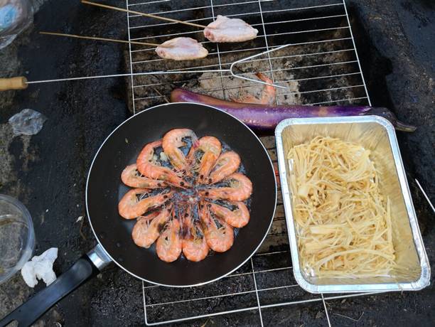 大家到达烧烤场后,十分有默契的开始分工合作:准备食材、配料、洗刷烧烤所用的网架、竹签和烧烤叉,加炭起炉子,温暖的炭火燃起了“人间烟火”。