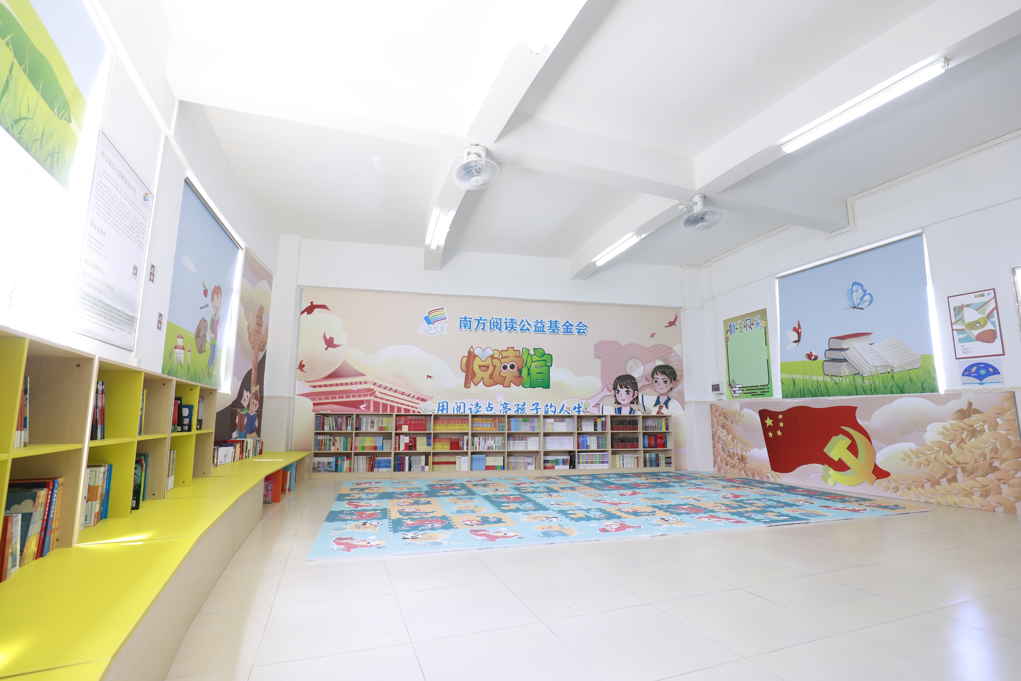 在南方阅读公益基金会的牵线下,向来以“诚信、利他和感恩”为企业价值观的广州东锐科技有限公司决定伸出援助之手,尽自己的绵薄之力捐赠课外读物2000多册并搭建了一个让孩子们能自由读书的地方——“悦读馆”,给孩子们在放学后或课后午休时能有一个良好的阅读环境。